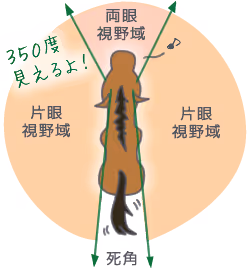 そのため、真後ろや足元で何かが動くと、驚いたり警戒したりしやすいのです。
