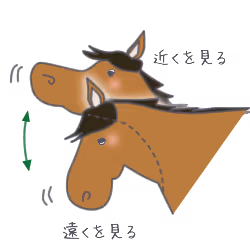 そこで馬たちは、あごを前後に動かしたり、頭を上下に動かしたりして、距離を調整しながら見ています。